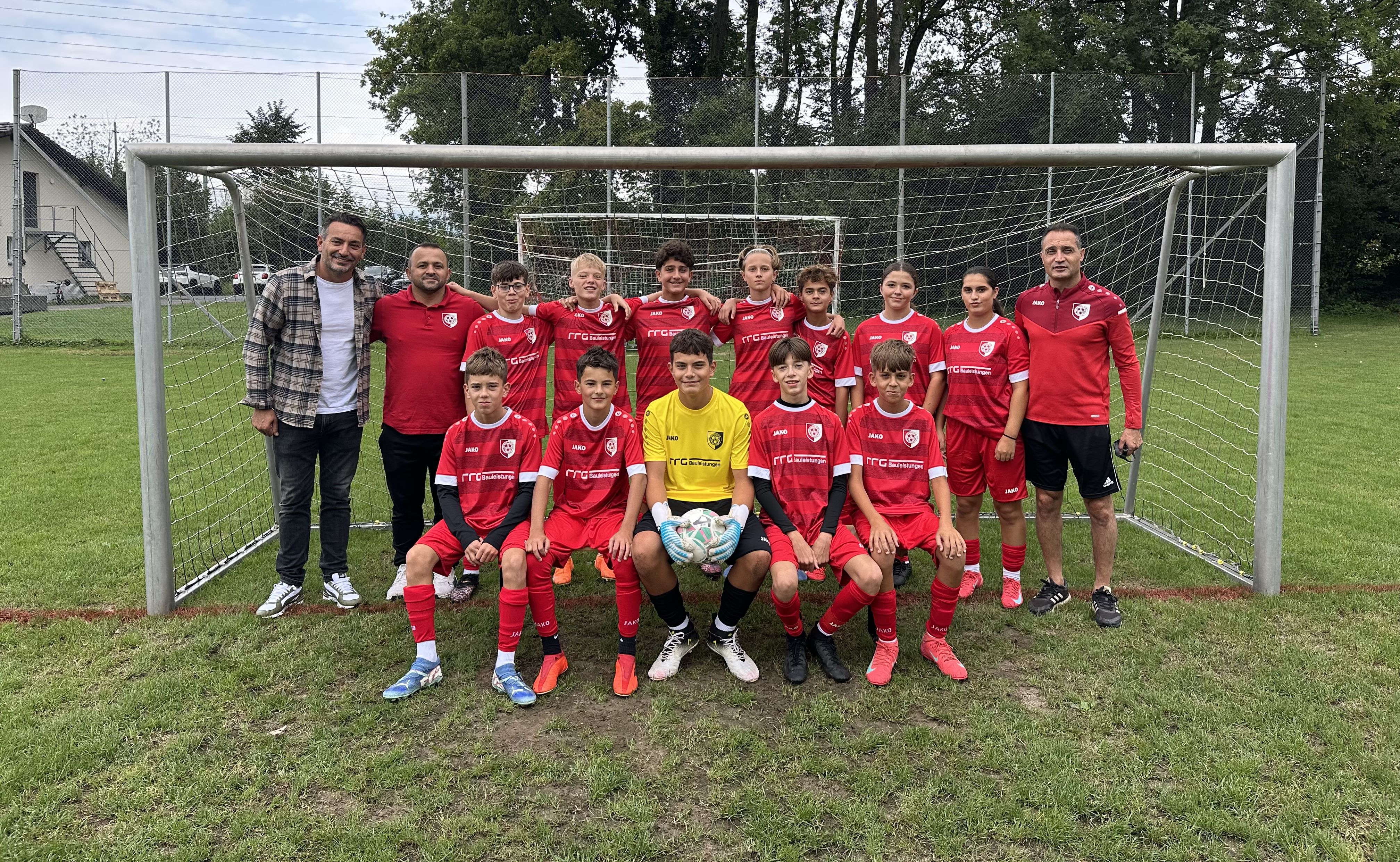 oben von links: Robi (Sponsor), Kreni (Trainer), Mirlind, Lukas, Dijar, Simon, Kerim, Lorena, Lilya, Michi (Trainer)